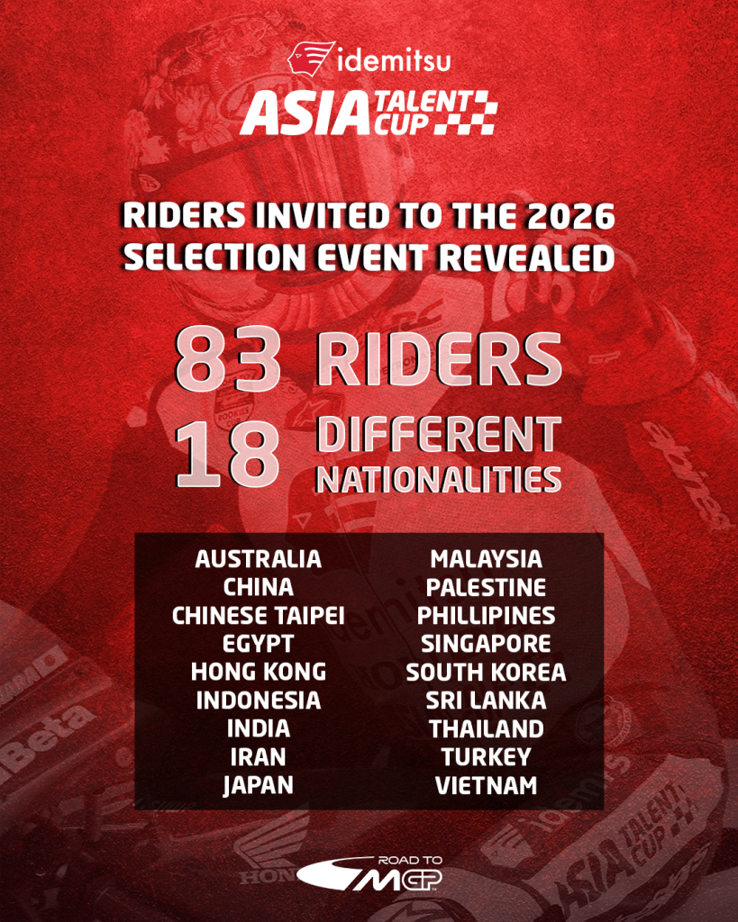 The candidates invited to attend the 2026 Idemitsu Asia Talent Cup Selection Event at Sepang have now been confirmed.